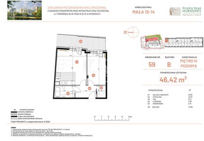 Mieszkanie na sprzedaż 2 pokoje Bydgoszcz Bartodzieje, 46,42 m2, 6 piętro