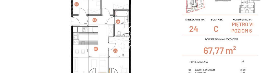 Mieszkanie na sprzedaż 4 pokoje Bydgoszcz Bartodzieje, 67,77 m2, 6 piętro