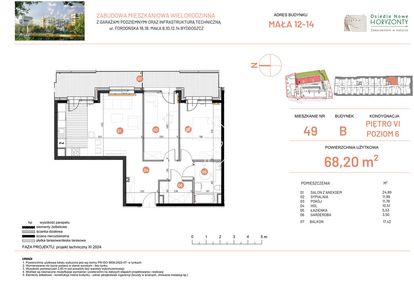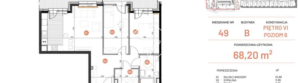 Mieszkanie na sprzedaż 3 pokoje Bydgoszcz Bartodzieje, 68,20 m2, 6 piętro