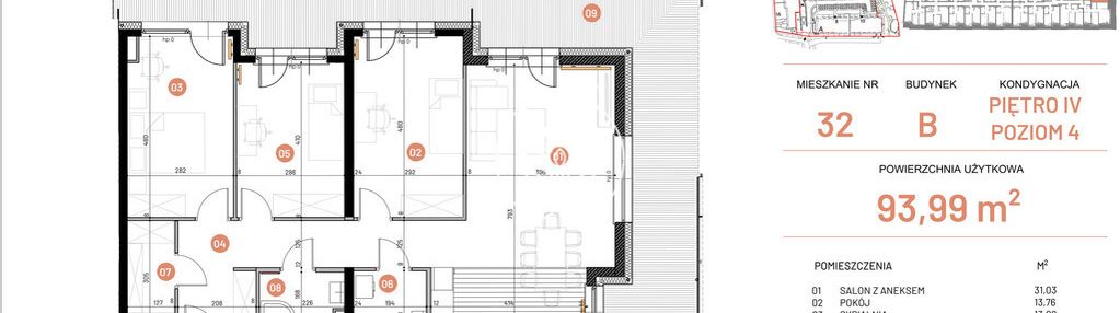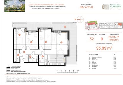 Mieszkanie na sprzedaż 4 pokoje Bydgoszcz Bartodzieje, 93,99 m2, 4 piętro