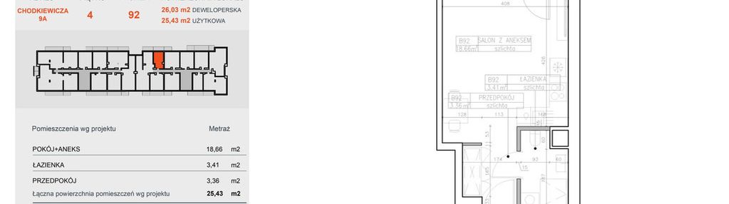 Opis nieruchomości o powierzchni 25,43 m2