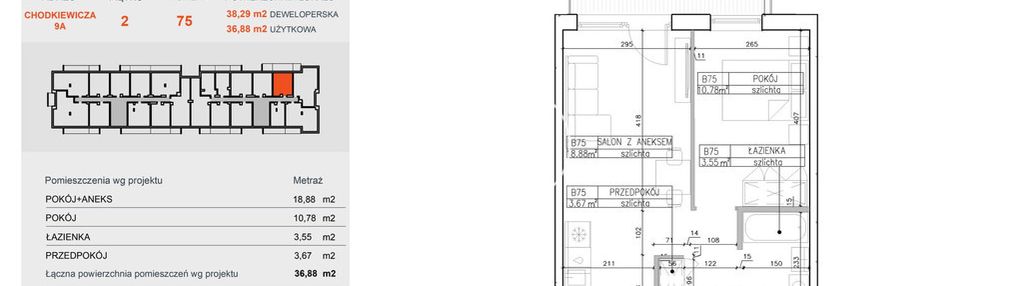 Opis nieruchomości o powierzchni 36,88 m2