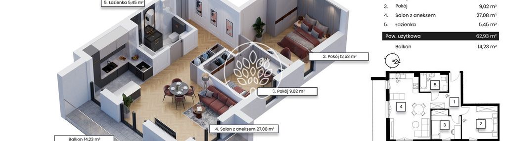 Opis nieruchomości o powierzchni 62,93 m2