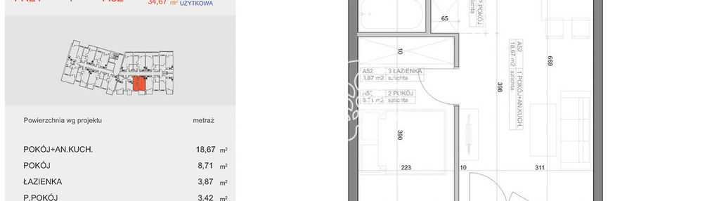Opis nieruchomości o powierzchni 34,67 m2