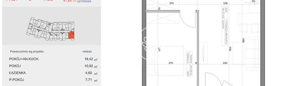 Opis nieruchomości o powierzchni 41,65 m2