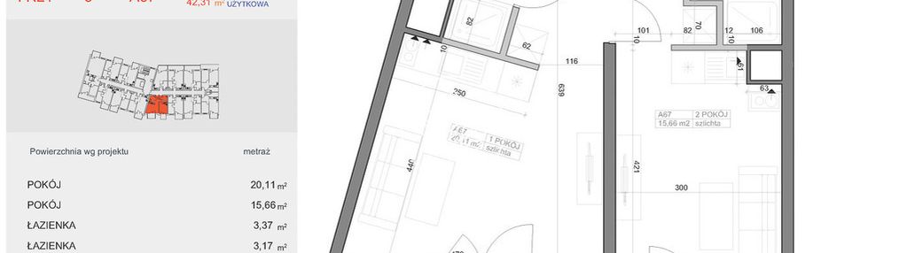 Opis nieruchomości o powierzchni 42,31 m2