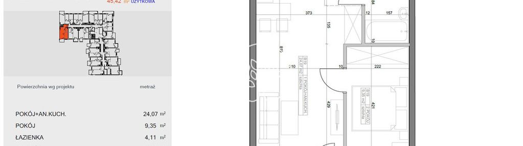 Opis nieruchomości o powierzchni 45,42 m2