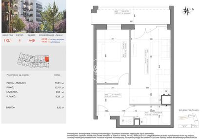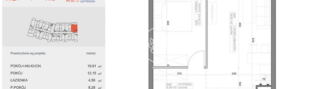 Opis nieruchomości o powierzchni 44,92 m2