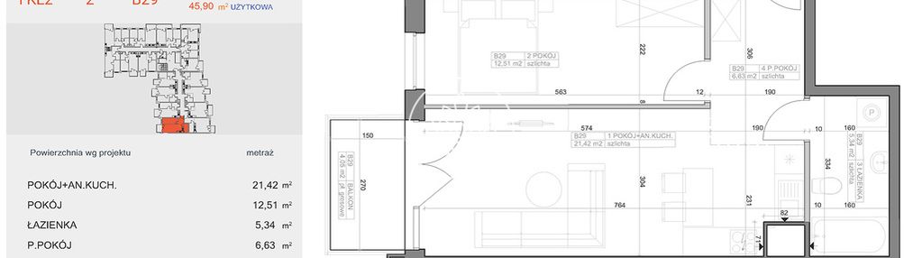 Opis nieruchomości o powierzchni 45,90 m2