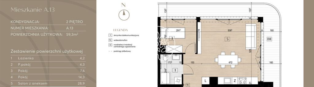 Opis nieruchomości o powierzchni 59,30 m2