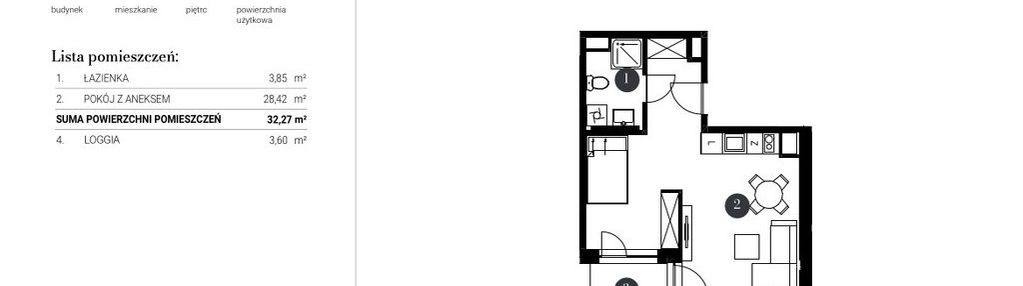 Opis nieruchomości o powierzchni 33,29 m2