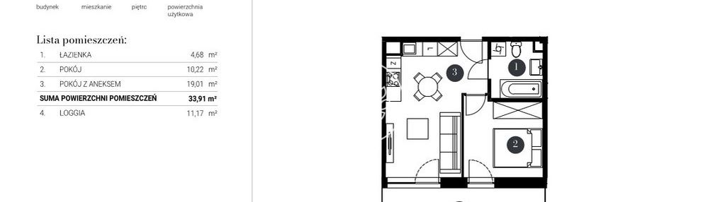 Opis nieruchomości o powierzchni 34,83 m2