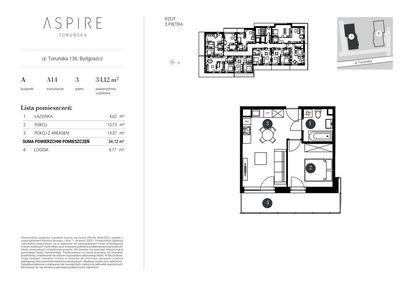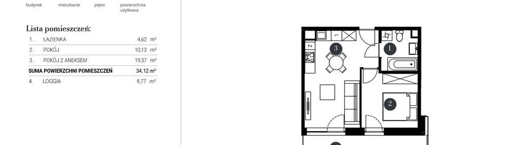 Opis nieruchomości o powierzchni 34,68 m2