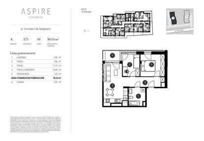 Mieszkanie na sprzedaż 3 pokoje Bydgoszcz Bocianowo-Śródmieście-Stare Miasto, 51,55 m2, 11 piętro