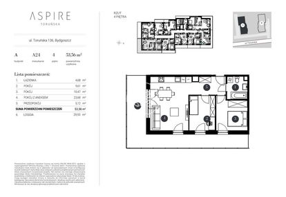Mieszkanie na sprzedaż 3 pokoje Bydgoszcz Bocianowo-Śródmieście-Stare Miasto, 54,56 m2, 5 piętro