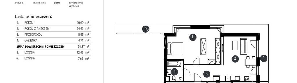Opis nieruchomości o powierzchni 65,82 m2