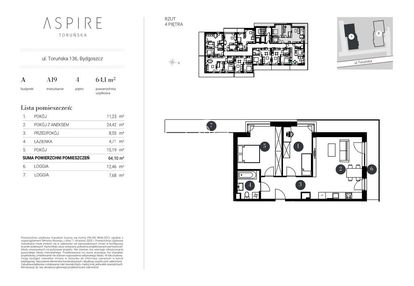 Mieszkanie na sprzedaż 3 pokoje Bydgoszcz Bocianowo-Śródmieście-Stare Miasto, 65,59 m2, 5 piętro