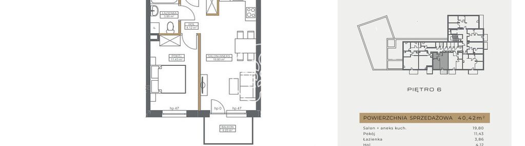 Mieszkanie na sprzedaż 2 pokoje Bydgoszcz Wzgórze Wolności, 39,21 m2, 6 piętro