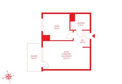 - pokój 1 : przestronny salon z aneksem kuchennym,