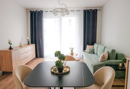 Mieszkanie zlokalizowane jest na I piętrze w $-piętrowym budynku z 2024 r. Nieruchomość składa się z: SALONU Z ANEKSEM kuchennym o pow. 21,00 m2, SYPIALNI o pow. 10,00 m2, ŁAZIENKI Z WC o pow. 4,00 m2 oraz przedpokoju o pow. 3,80 m2. Mieszkanie wykończone jest z dbałością o każdy szczegół z wysokiej jakości materiałów. Całe wyposażenie mieszkania pozostaje i jest w jego cenie.