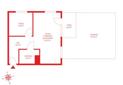 - pokój 1 : przestronny salon z aneksem kuchennym,