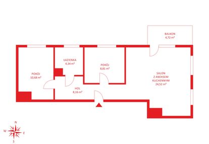 Mieszkanie o powierzchni 56,51 metrów kwadratowych składa się z trzech pokoi, w tym jeden z aneksem kuchennym, łazienki oraz przedpokoju. Układ pomieszczeń został starannie zaprojektowany, aby zapewnić komfortowe i funkcjonalne mieszkanie dla przyszłych właścicieli.