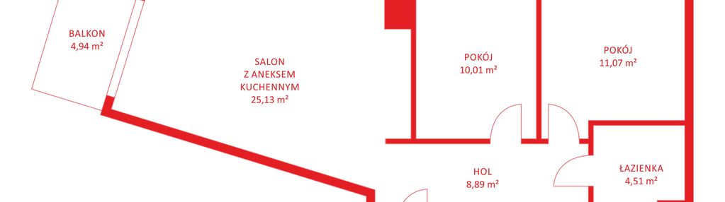 - pokój 1 : przestronny salon z aneksem kuchennym,