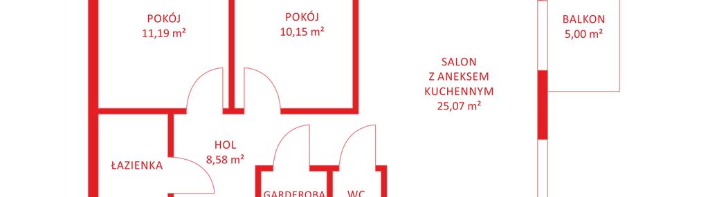 Mieszkanie o powierzchni 62,59 metrów kwadratowych składa się z trzech pokoi, w tym jeden z aneksem kuchennym, łazienki oraz przedpokoju. Układ pomieszczeń został starannie zaprojektowany, aby zapewnić komfortowe i funkcjonalne mieszkanie dla przyszłych właścicieli.