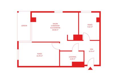 Mieszkanie o powierzchni 54,82 metrów kwadratowych składa się z 3 pokojów;