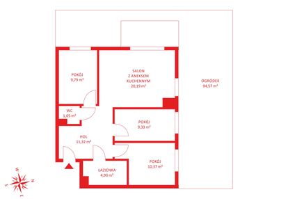 Mieszkanie o powierzchni 67,58 metrów kwadratowych składa się z 4 pokoi,