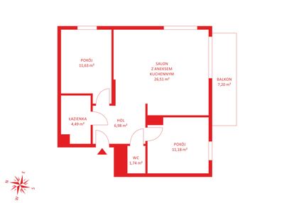 Opis nieruchomości o powierzchni 62,53 m2