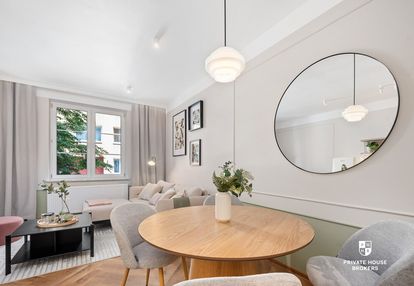 We offer for sale a 1-bedroom apartment after a general renovation with an area of approx. 45m2 located on the high ground floor of a tenement house from the 1930s. The apartment is newly finished, with the replacement of all installations and the installation of a modern gas two-function furnace. The premises are sold with all the equipment visible in the photos. The apartment includes a very large basement of approx. 8m2.
