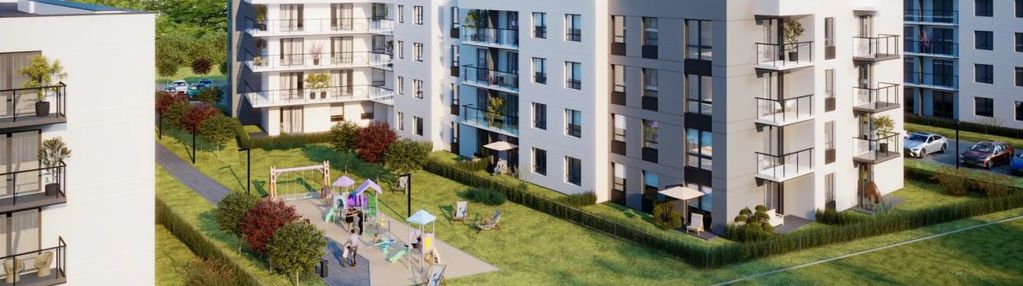- Otoczenie uzupełnia zieleń, mała architektura i plac zabaw dla dzieci.