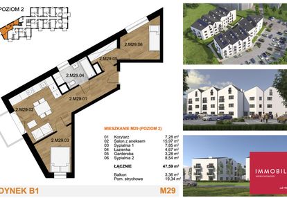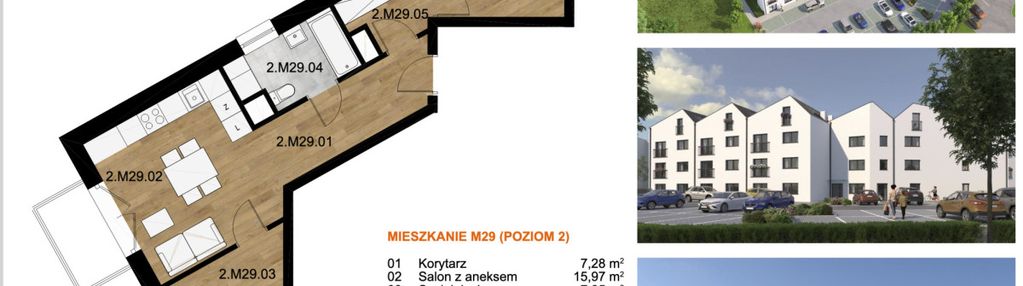 Oferujemy na sprzedaż mieszkanie w powstającej właśnie inwestycji w Mierzynie, przy ulicy Nasiennej. Mieszkanie znajduje się na II piętrze budynku, składa się z salonu z aneksem kuchennym, dwóch sypialni, garderoby, łazienki oraz korytarza. Powierzchnia użytkowa wynosi 47,59m2, a całkowita 66,93m2 - co wynika z dodatkowej powierzchni, którą stanowi antresola.