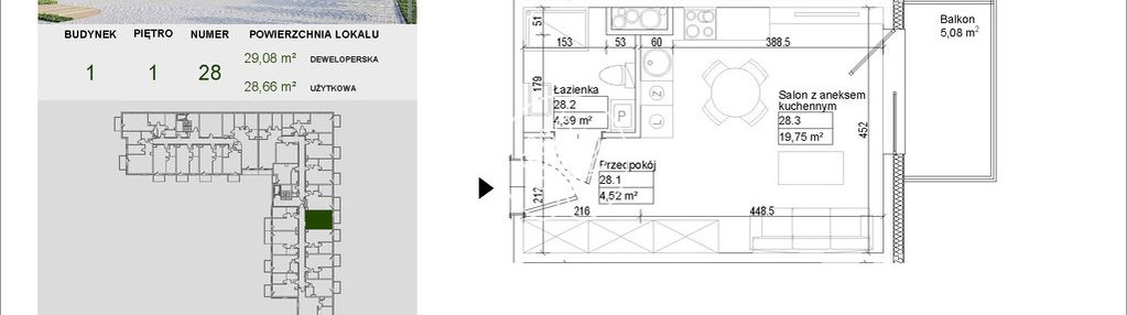 Opis nieruchomości o powierzchni 28,66 m2