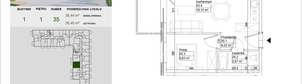 Opis nieruchomości o powierzchni 35,45 m2