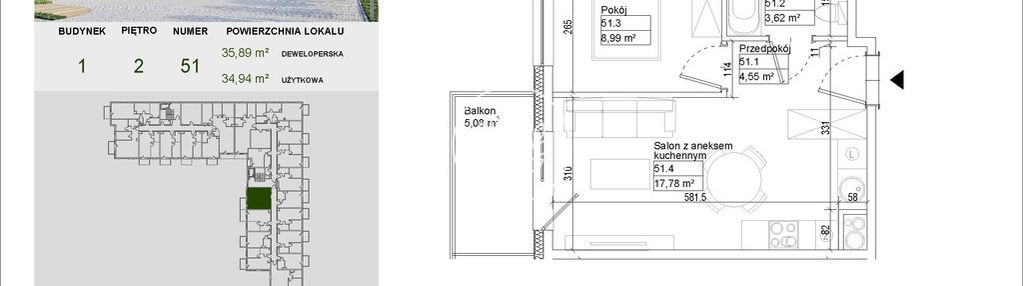 Opis nieruchomości o powierzchni 34,94 m2
