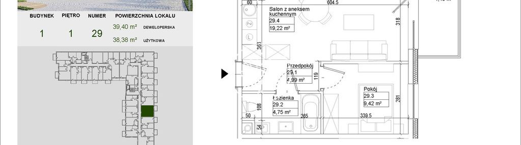 Mieszkanie na sprzedaż 2 pokoje Osielsko, 38,38 m2, 1 piętro