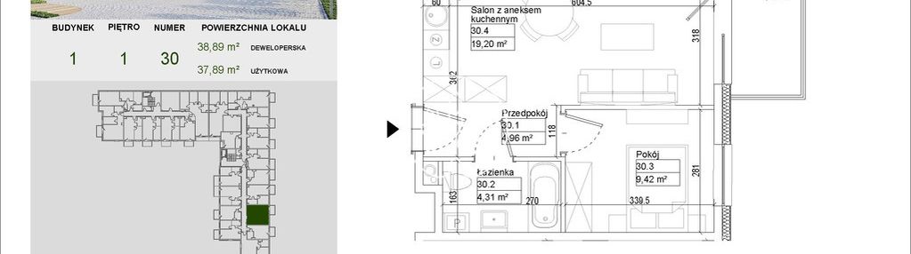 Opis nieruchomości o powierzchni 37,89 m2