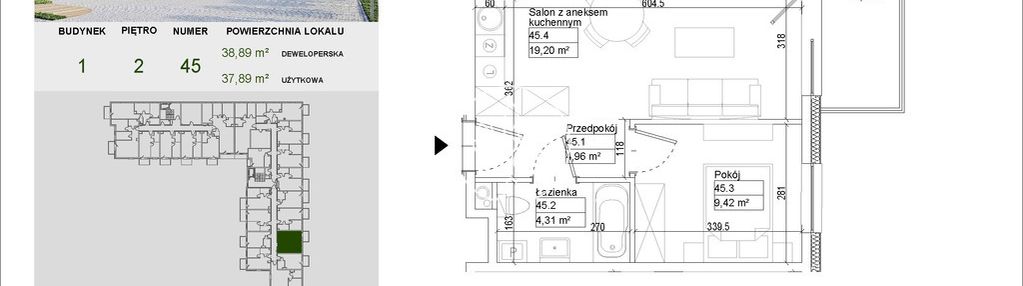 Opis nieruchomości o powierzchni 37,89 m2