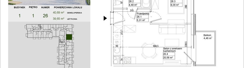 Opis nieruchomości o powierzchni 39,65 m2