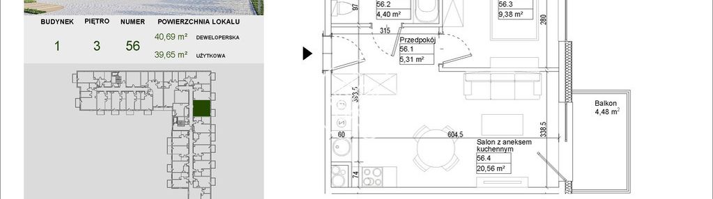 Mieszkanie na sprzedaż 2 pokoje Osielsko, 39,65 m2, 3 piętro
