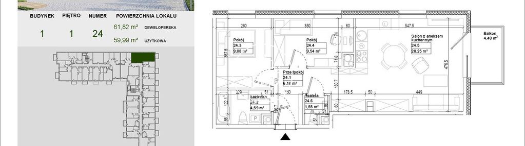 Opis nieruchomości o powierzchni 59,99 m2