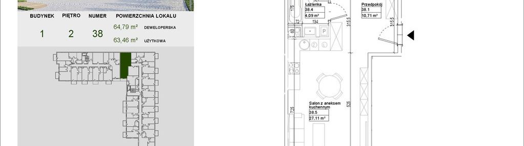 Mieszkanie na sprzedaż 3 pokoje Osielsko, 63,46 m2, 2 piętro