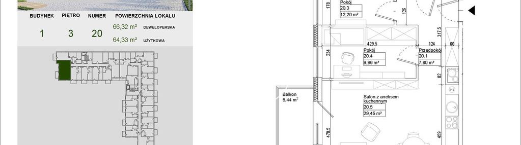 Mieszkanie na sprzedaż 3 pokoje Osielsko, 64,33 m2, 3 piętro