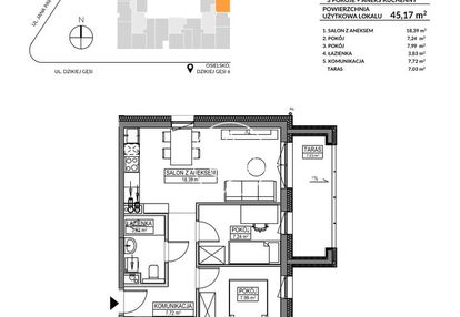 Mieszkanie na sprzedaż 3 pokoje Osielsko, 45,17 m2, 2 piętro