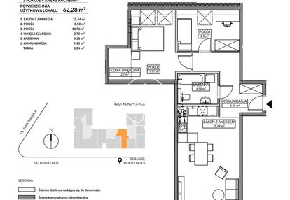 Mieszkanie na sprzedaż 3 pokoje Osielsko, 62,28 m2, 3 piętro