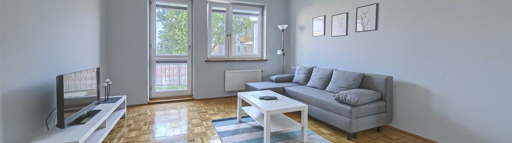 Przestronny Salon (17,9 m²) z wyjściem na balkon .