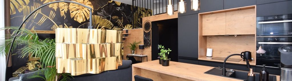 - salon z jadalnią i aneksem kuchennym z pół-wyspą o łącznej pow. 34m2