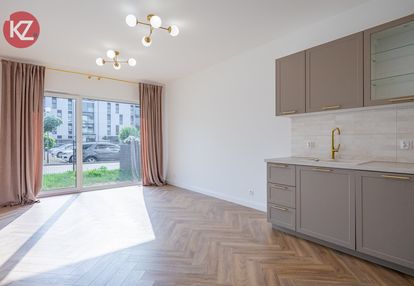 Salon z aneksem kuchennym o powierzchni ok. 22 m², z wyjściem do mniejszego ogródka. Aneks kuchenny wyposażony w zabudowę meblową oraz sprzęt AGD, zapewniający pełną funkcjonalność.